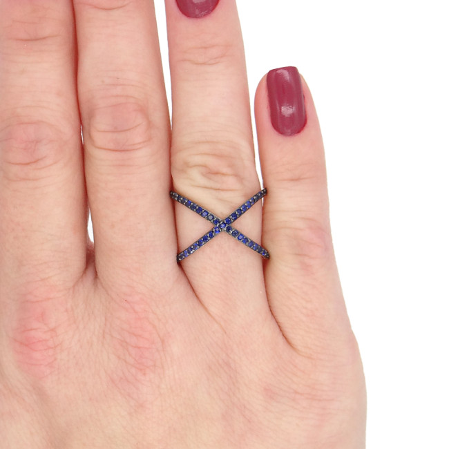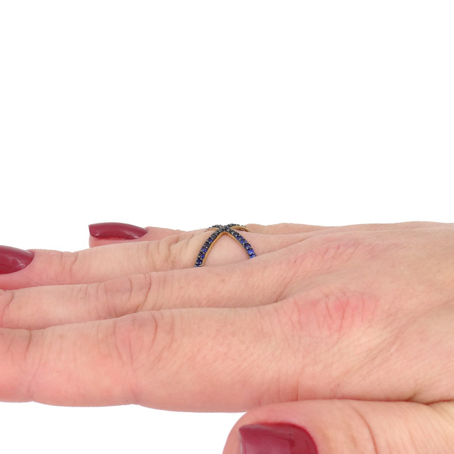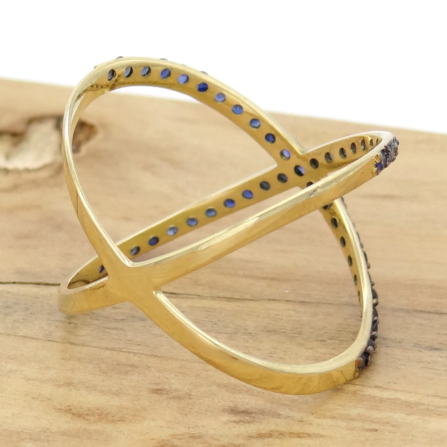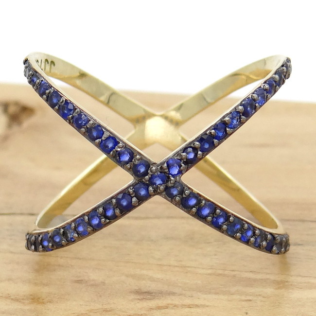 Anel  X com 45 Safiras, em Ouro Amarelo 18 Kilates