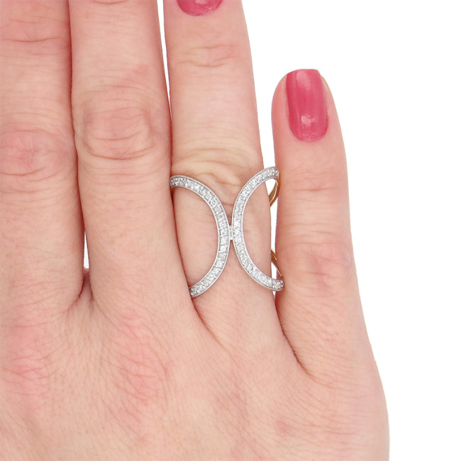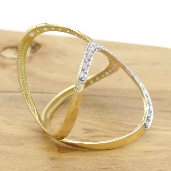 Anel  X com 46 Diamantes, em Ouro Amarelo 18 Kilates