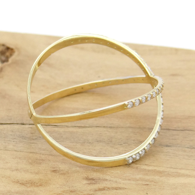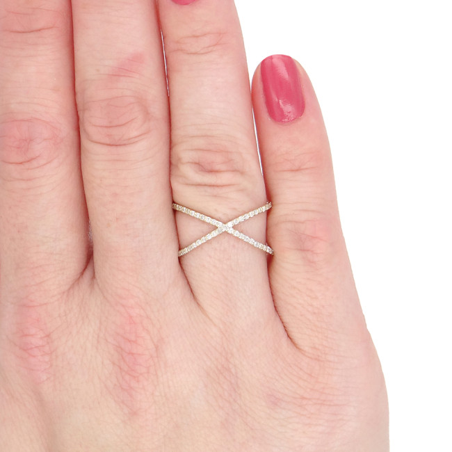 Anel  X com Zircônias, em Ouro Amarelo 18 Kilates
