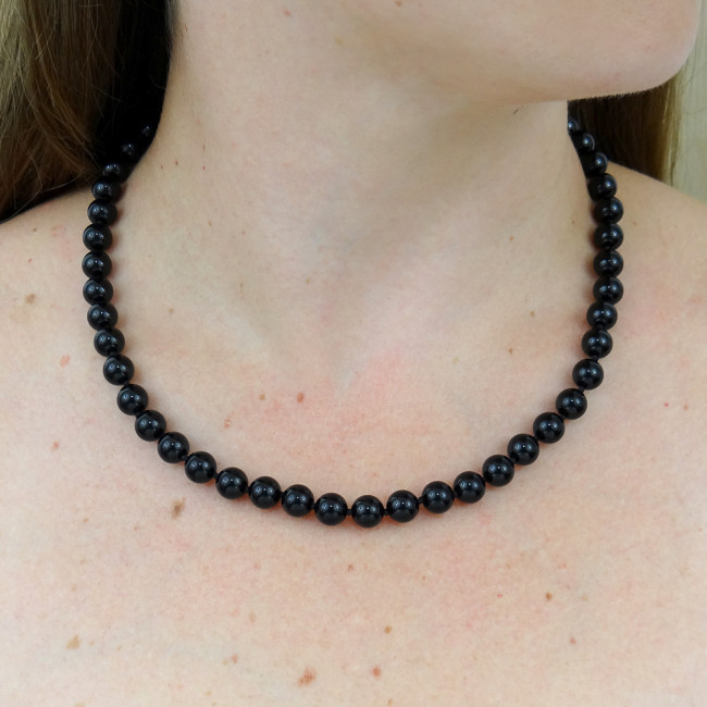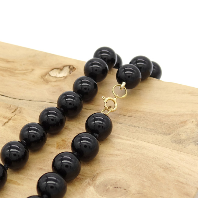 Colar de Ônix Cabochon de 9 mm, Fecho em Ouro 18 Kilates