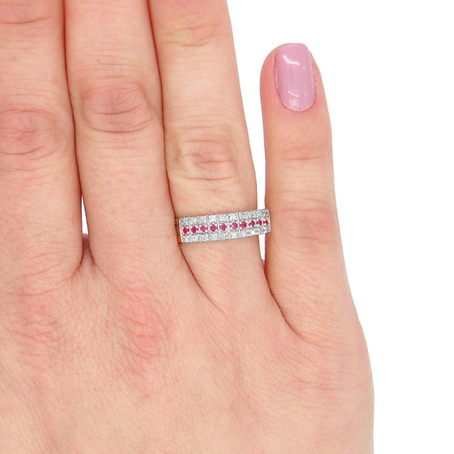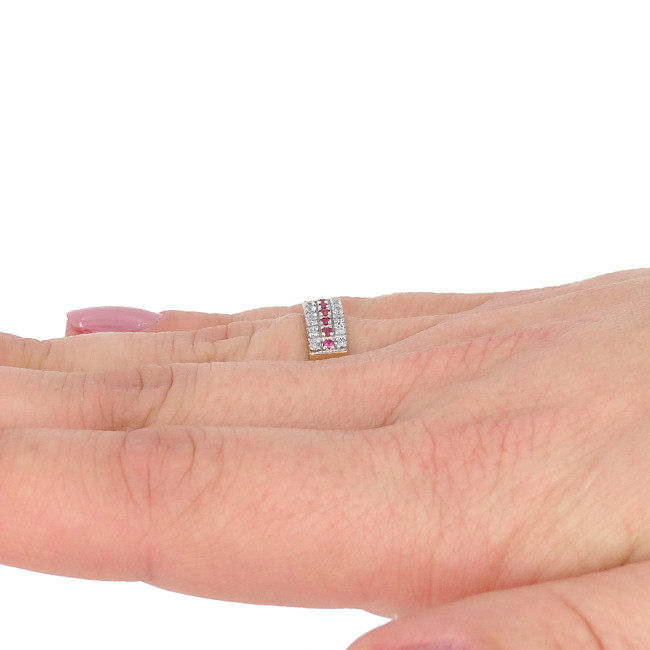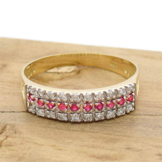 Meia Aliança com 10 Rubis e 20 Diamantes, em Ouro Amarelo 18 Kilates