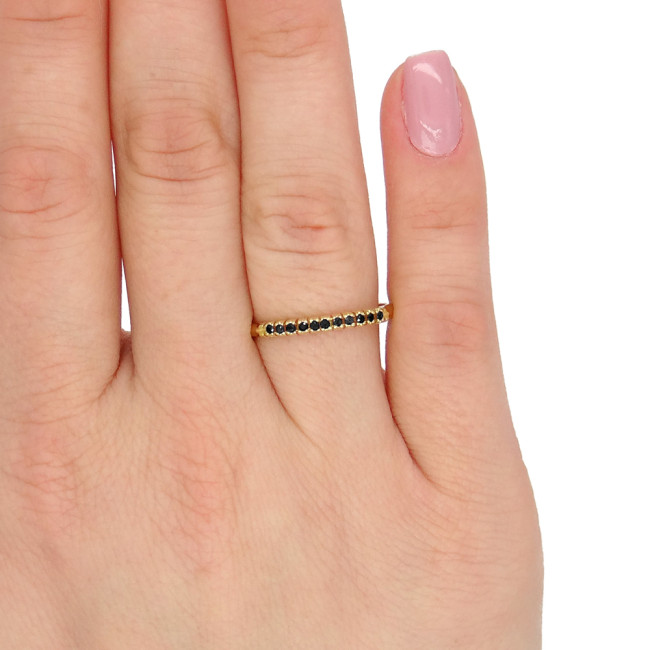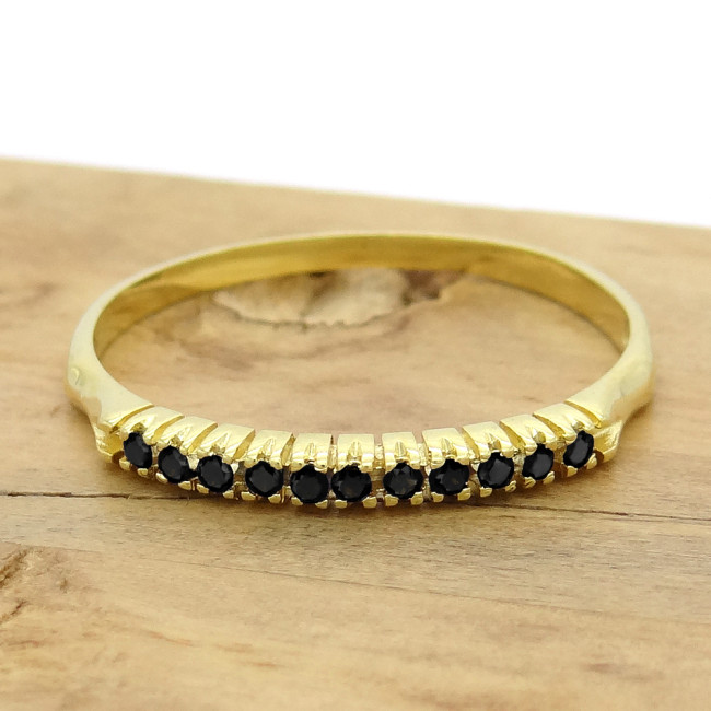 Meia Aliança com 11 Diamantes Negros, em Ouro Amarelo 18 Kilates