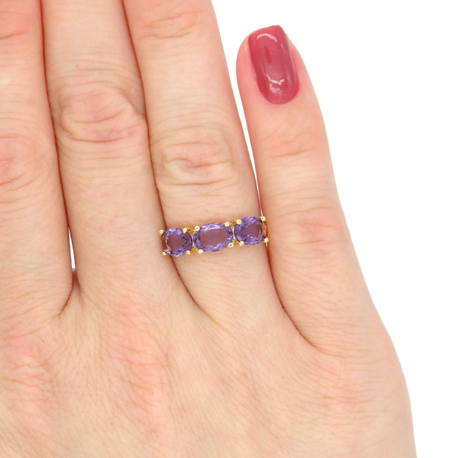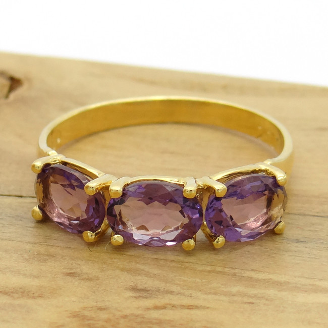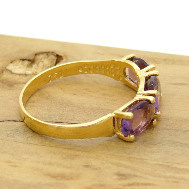 Meia Aliança com 3 Ametistas, em Ouro Amarelo 18 Kilates