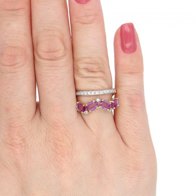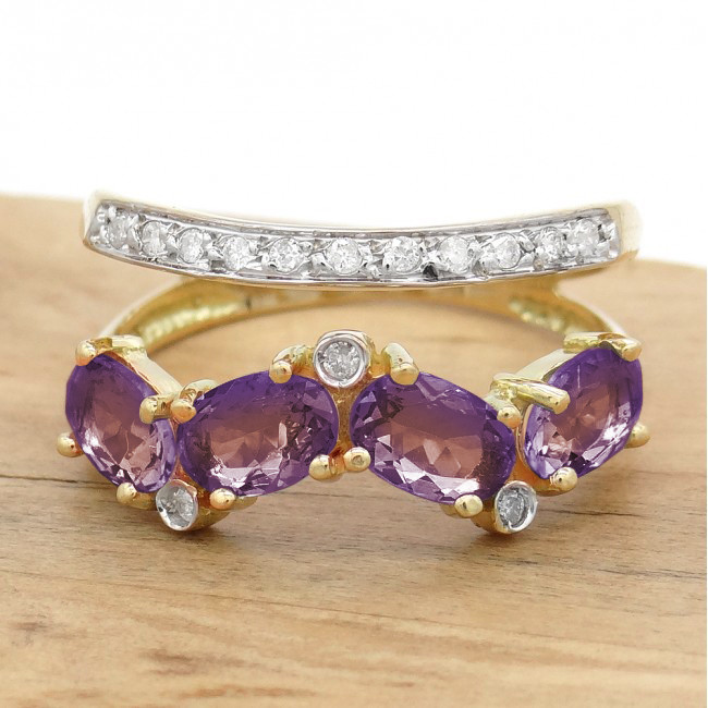 Meia Aliança com 4 Ametistas e 14 Diamantes, em Ouro Amarelo 18 Kilates
