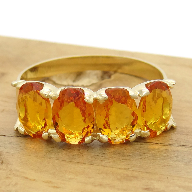 Meia Aliança com 4 Citrinos, em Ouro Amarelo 18 Kilates