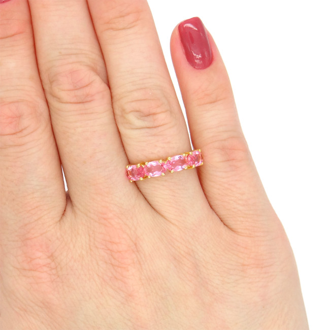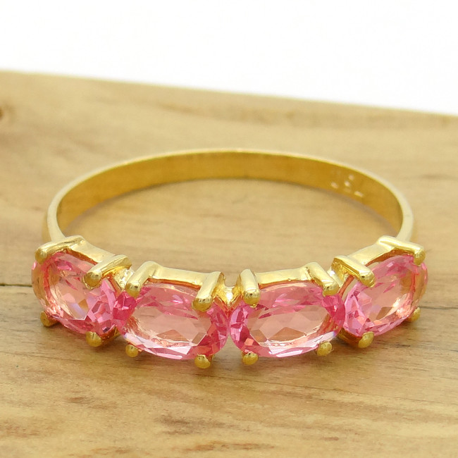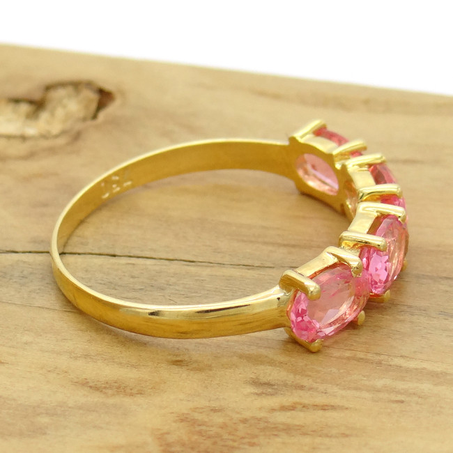 Meia Aliança com 4 Cristais de Rubelita, em Ouro Amarelo 18 Kilates