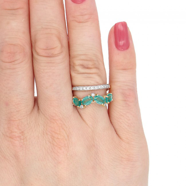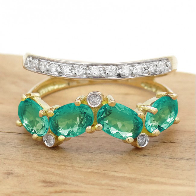 Meia Aliança com 4 Cristais de Turmalinas Paraíbas e 14 Diamantes, em Ouro Amarelo 18 Kilates