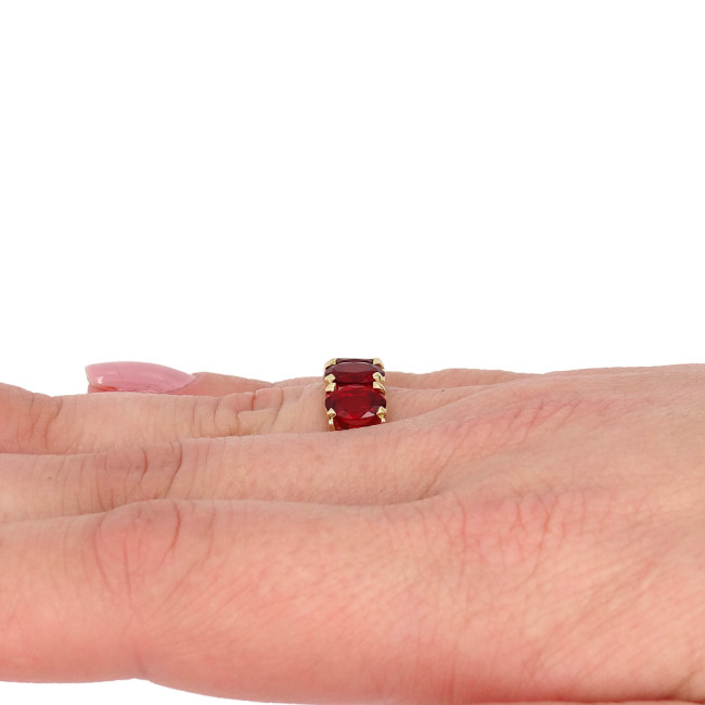 Meia Aliança com 4 Quartzos Rubis, em Ouro Amarelo 18 Kilates