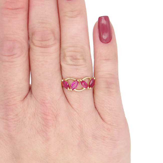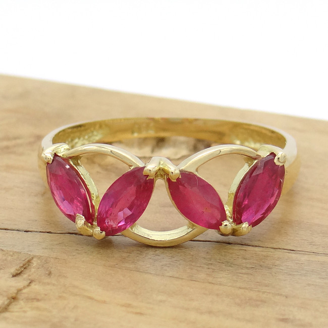 Meia Aliança com 4 Rubis, em Ouro Amarelo 18 Kilates