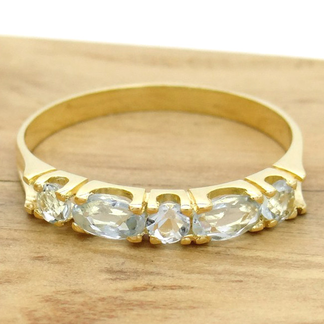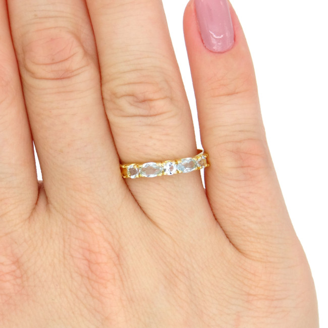 Meia Aliança com 5 Águas Marinhas, em Ouro Amarelo 18 Kilates