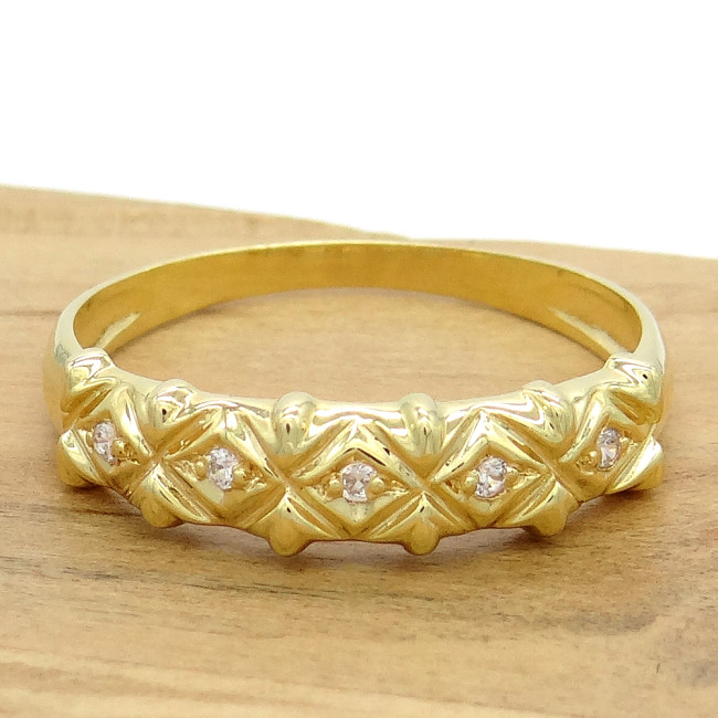 Meia Aliança com 5 Diamantes, em Ouro Amarelo 18 Kilates
