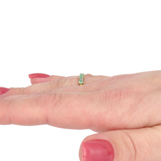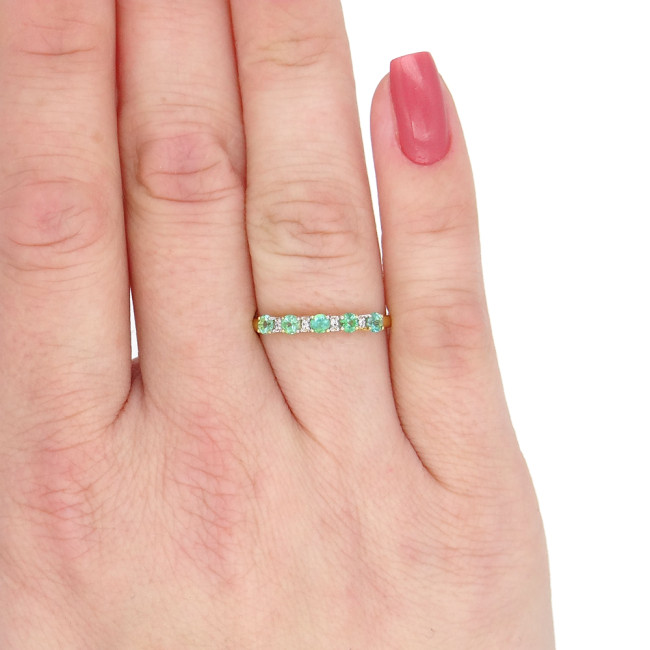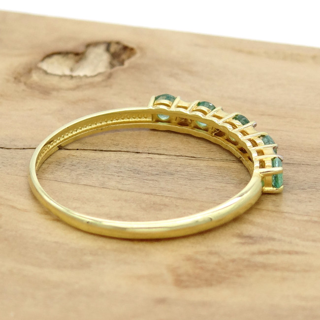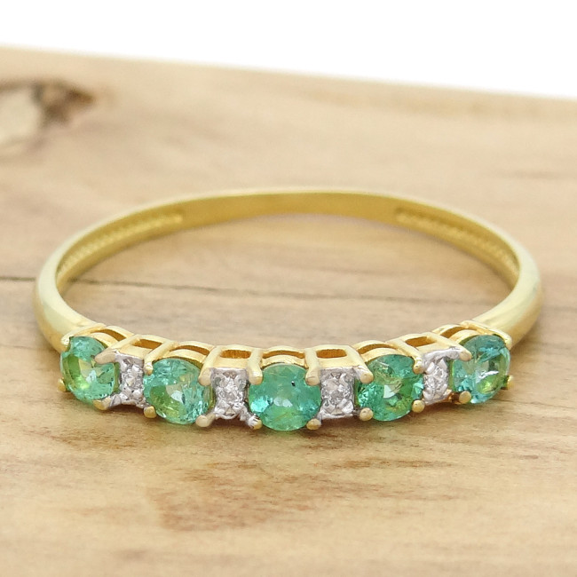 Meia Aliança com 5 Esmeraldas e 4 Diamantes, em Ouro Amarelo 18 Kilates