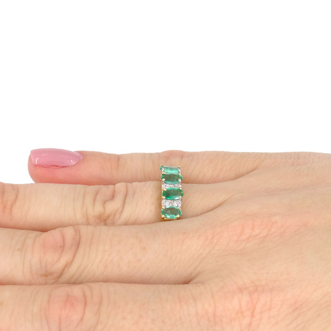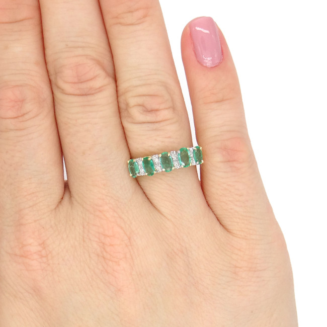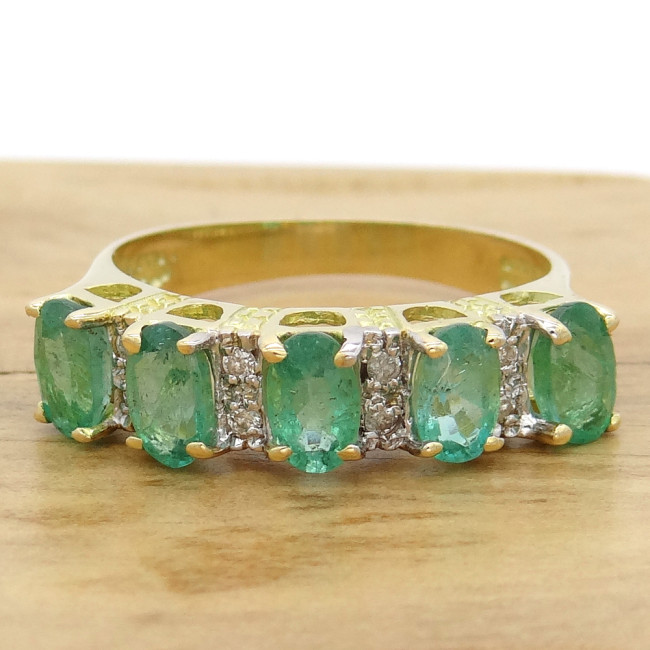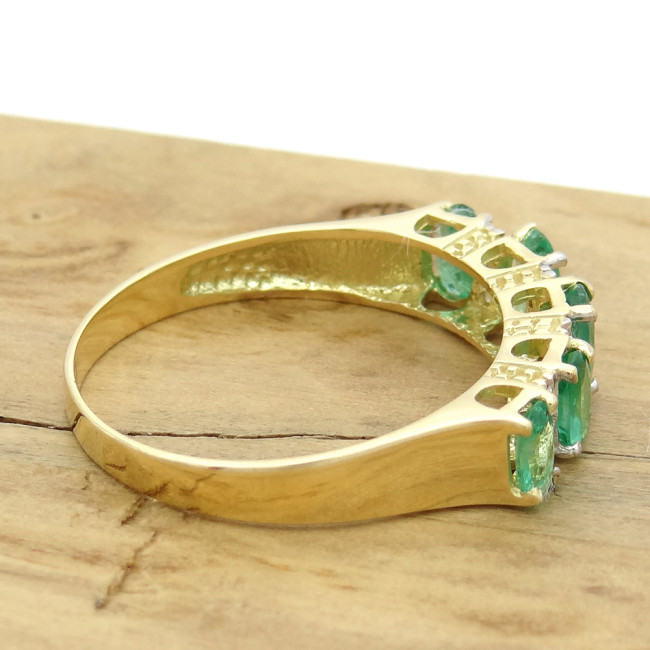 Meia Aliança com 5 Esmeraldas e 8 Diamantes, em Ouro Amarelo 18 Kilates