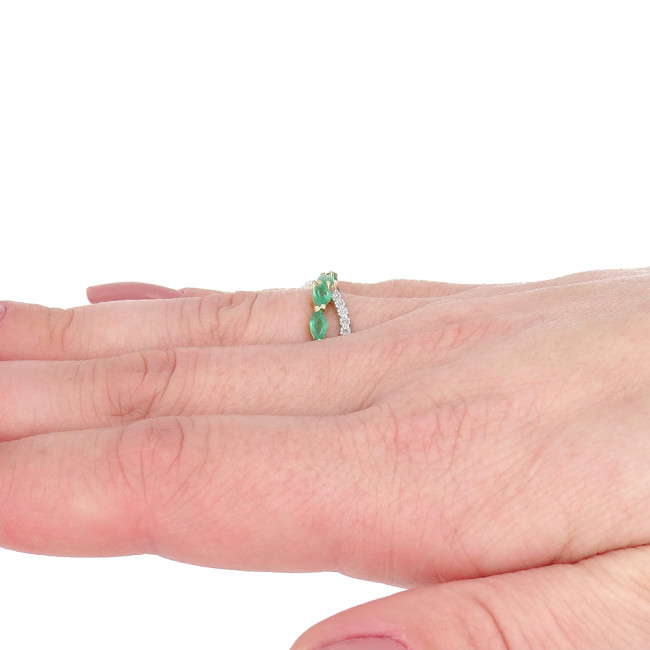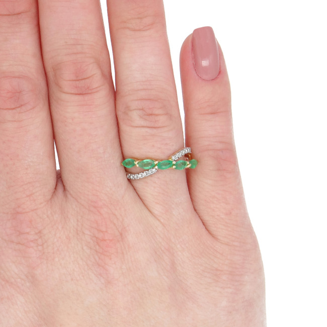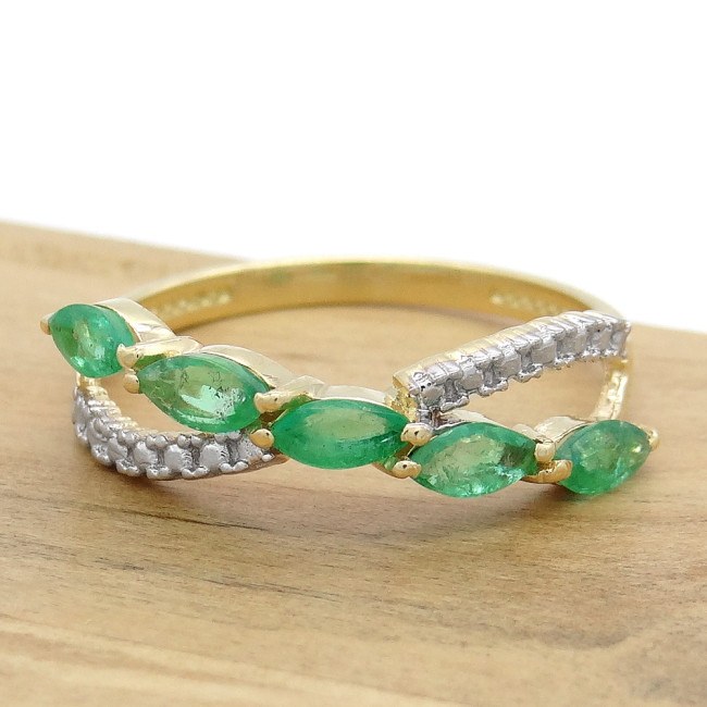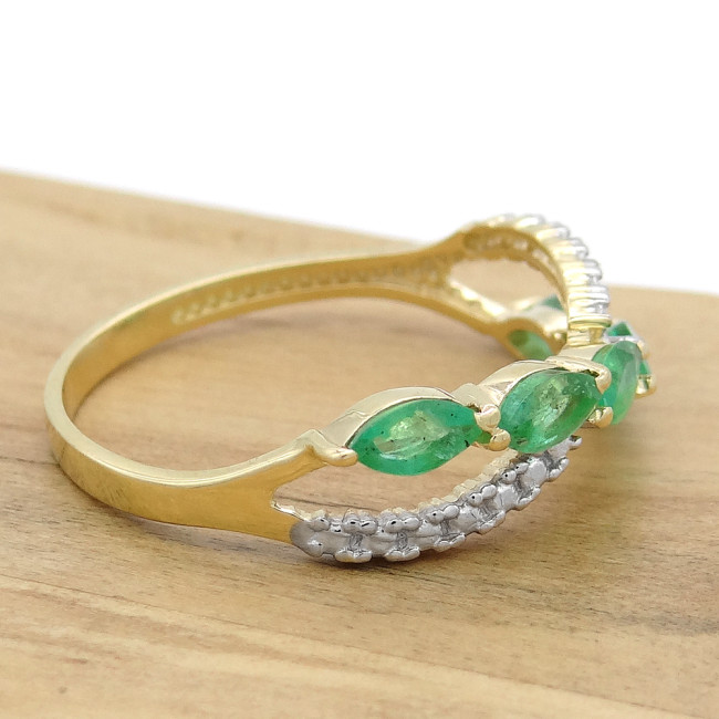 Meia Aliança com 5 Esmeraldas, em Ouro Amarelo 18 Kilates