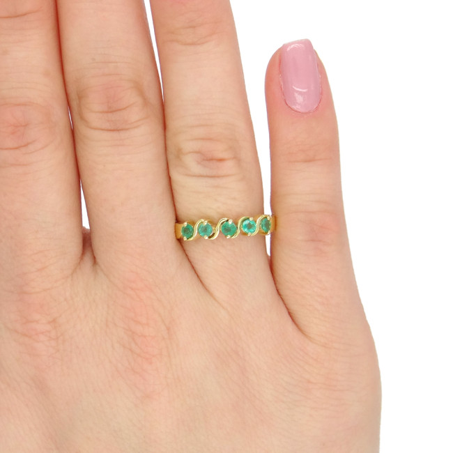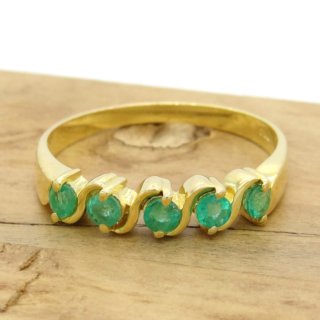 Meia Aliança com 5 Esmeraldas, em Ouro Amarelo 18 Kilates