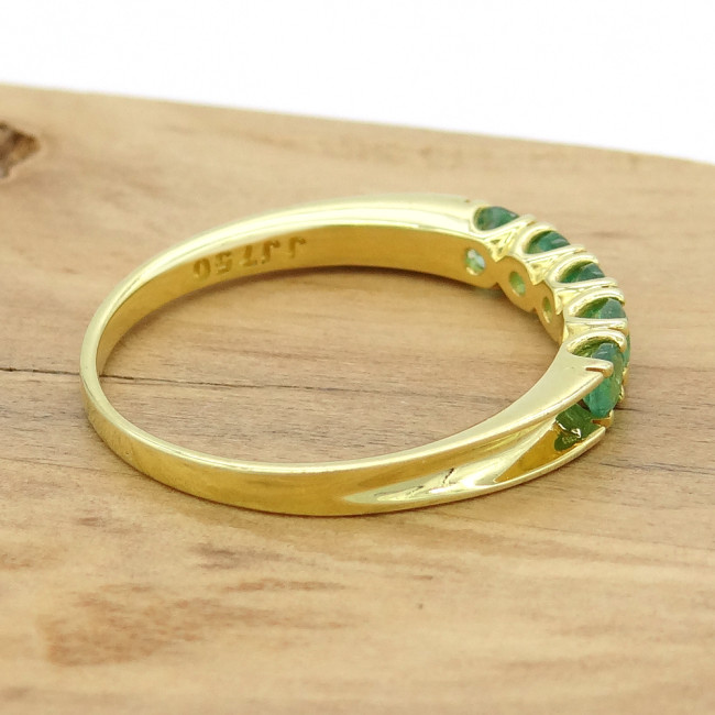 Meia Aliança com 5 Esmeraldas Totalizando 60 Pontos, em Ouro Amarelo 18 Kilates