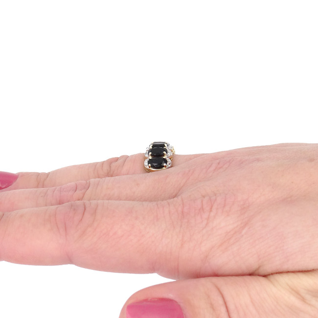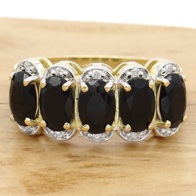 Meia Aliança com Ônix e 10 Diamantes, em Ouro Amarelo 18 Kilates