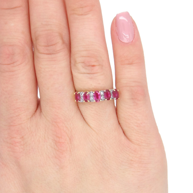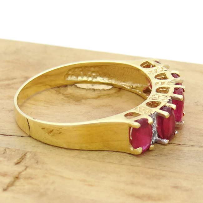 Meia Aliança com 5 Rubis e 8 Diamantes, em Ouro Amarelo 18 Kilates