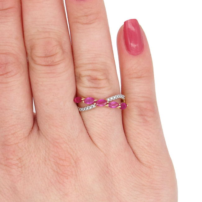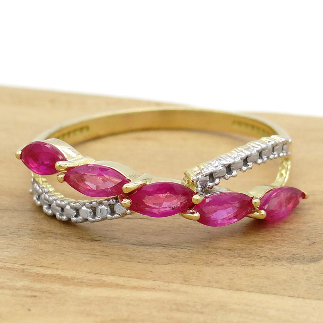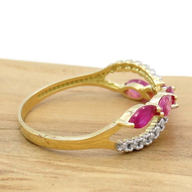 Meia Aliança com 5 Rubis, em Ouro Amarelo 18 Kilates