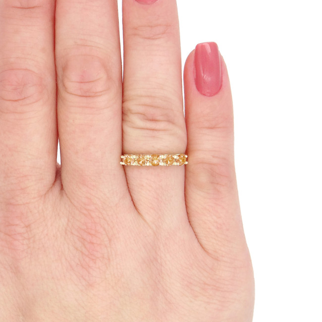 Meia Aliança com 5 Safiras Laranjas Naturais Totalizando 60 Pontos, em Ouro Amarelo 18 Kilates