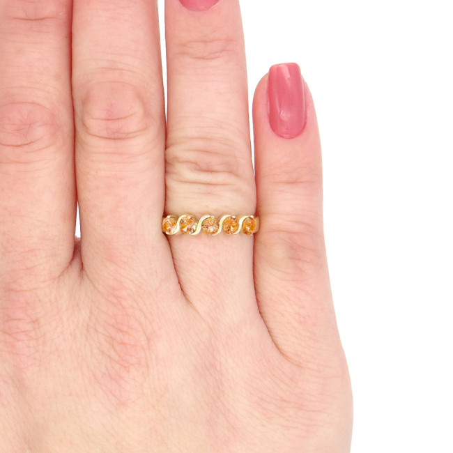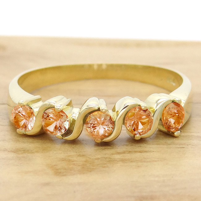 Meia Aliança com 5 Safiras Laranjas Naturais Totalizando 75 Pontos, em Ouro Amarelo 18 Kilates