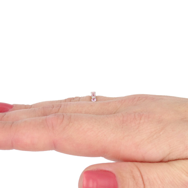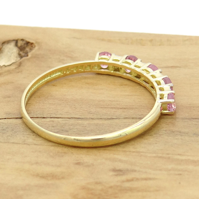 Meia Aliança com 5 Safiras Rosas Naturais e 4 Diamantes, em Ouro Amarelo 18 Kilates