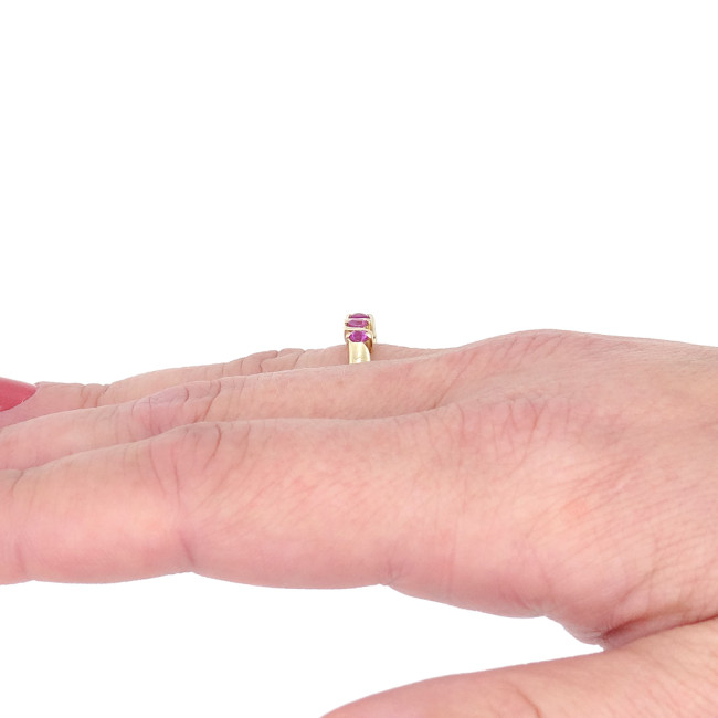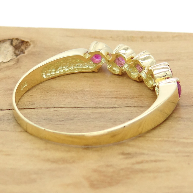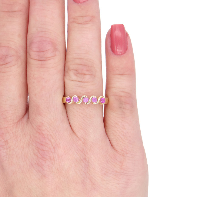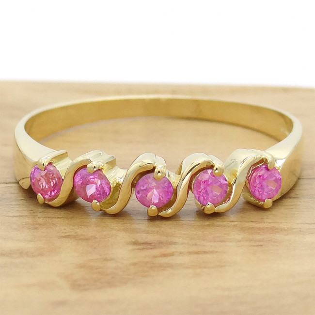 Meia Aliança com 5 Safiras Rosas Naturais Totalizando 75 Pontos, em Ouro Amarelo 18 Kilates