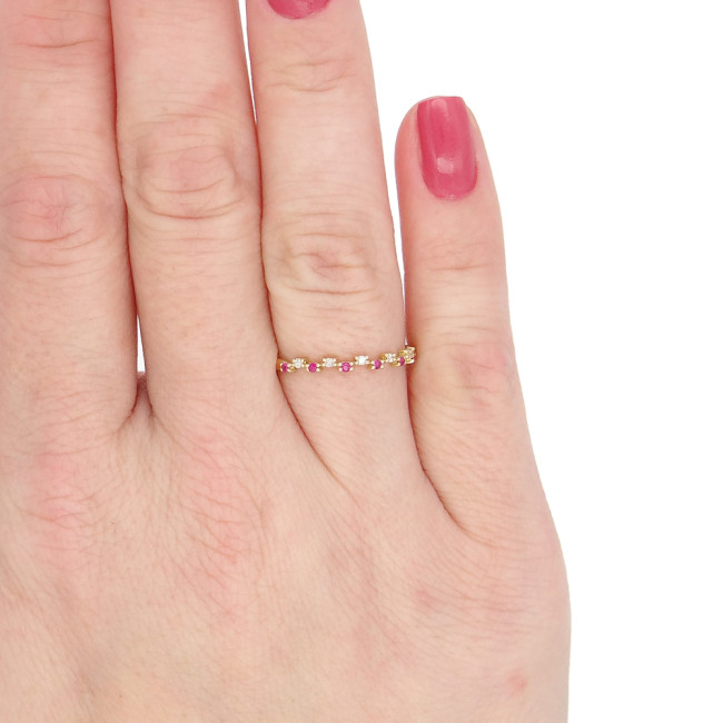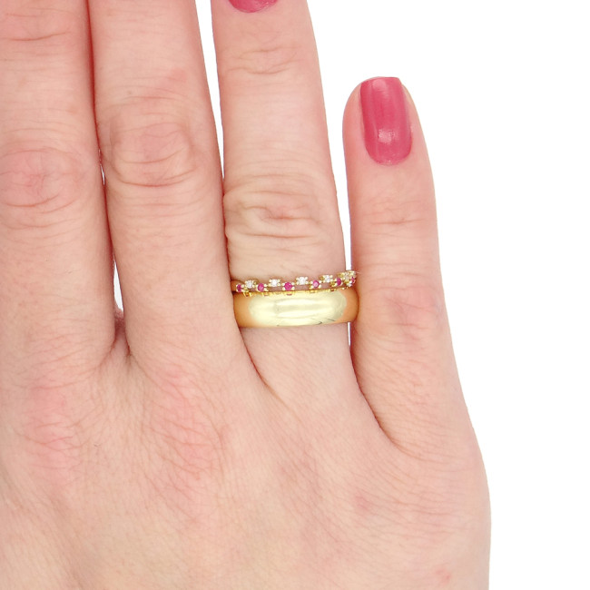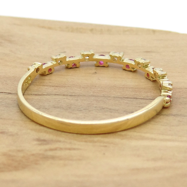 Meia Aliança com 7 Rubis e 7 Diamantes, em Ouro Amarelo 18 Kilates