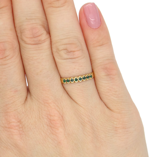 Meia Aliança com 8 Esmeraldas, em Ouro Amarelo 18 Kilates