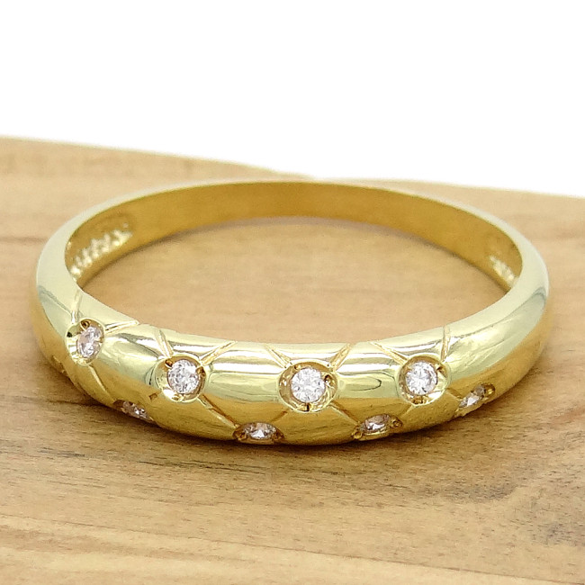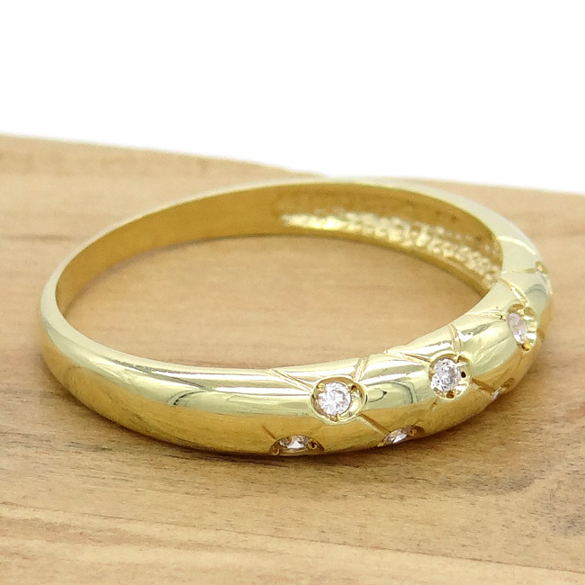 Meia Aliança com 9 Diamantes, em Ouro Amarelo 18 Kilates
