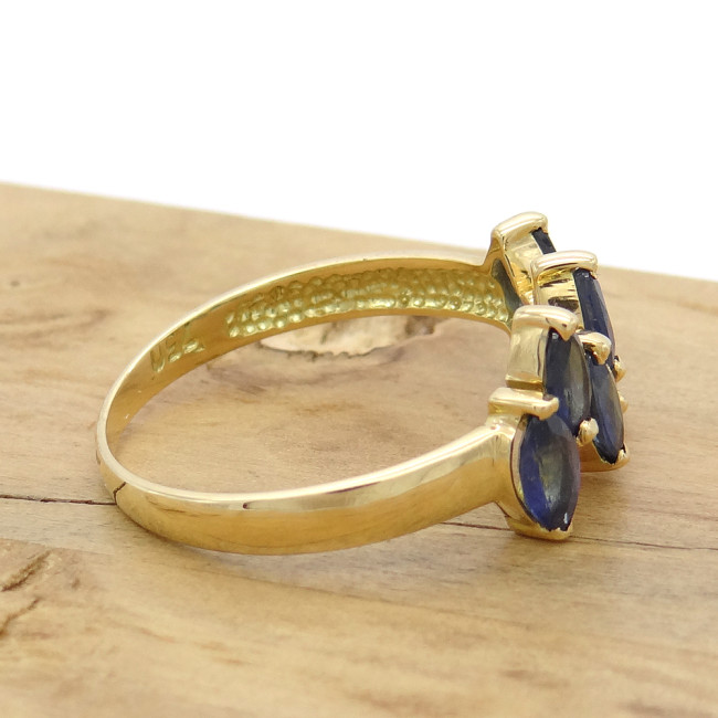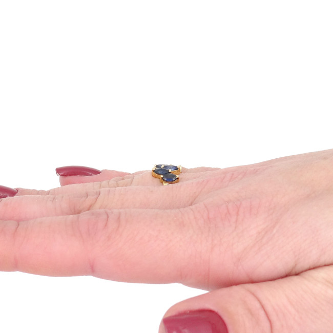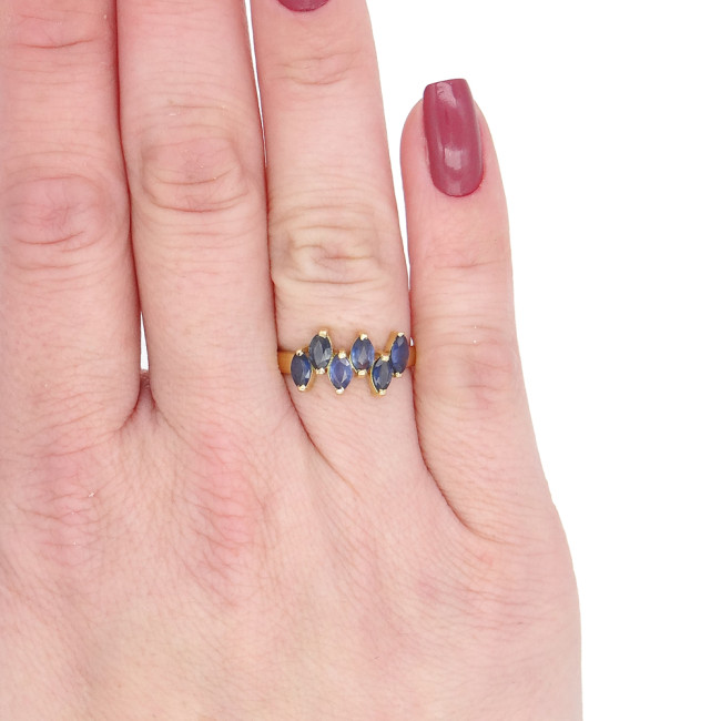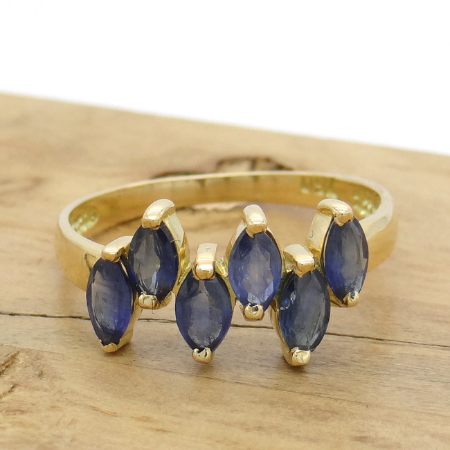 Meia Aliança com 6 Safiras, em Ouro Amarelo 18 Kilates