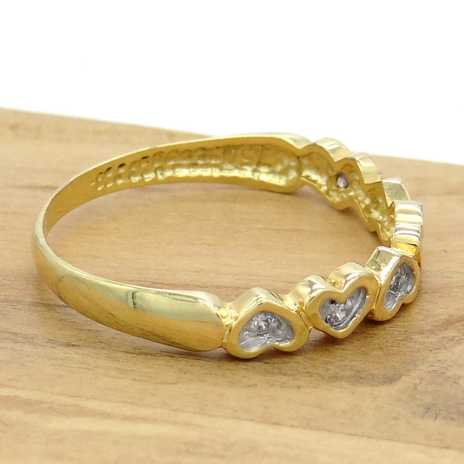 Meia Aliança Coração com 6 Diamantes, em Ouro Amarelo 18 Kilates