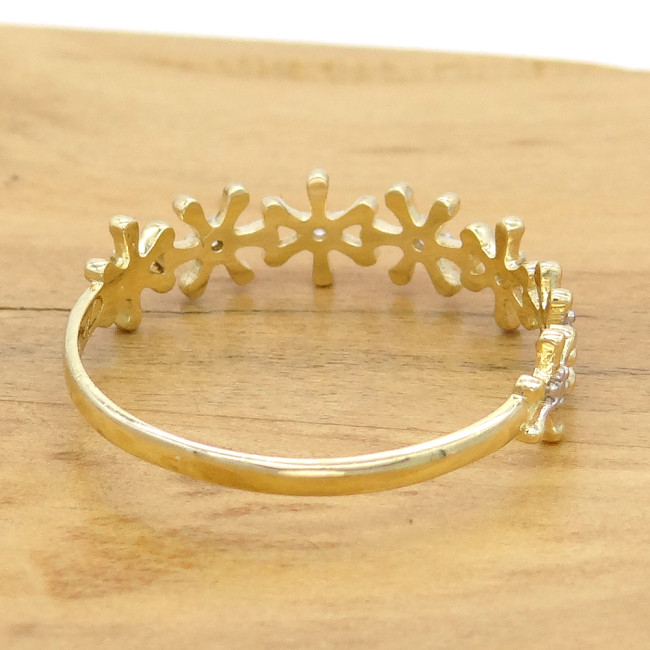 Meia Aliança Flores com 5 Diamantes, em Ouro Amarelo 18 Kilates
