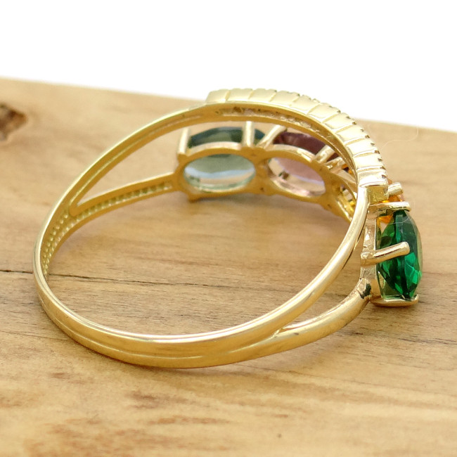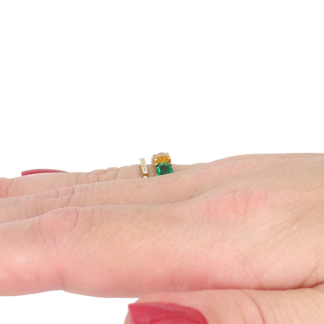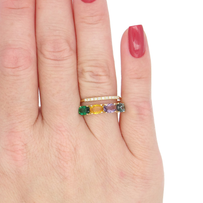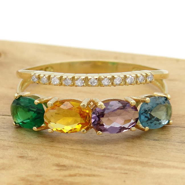 Meia Aliança Mix de Gemas Brasileiras e 11 Diamantes, em Ouro Amarelo 18 Kilates