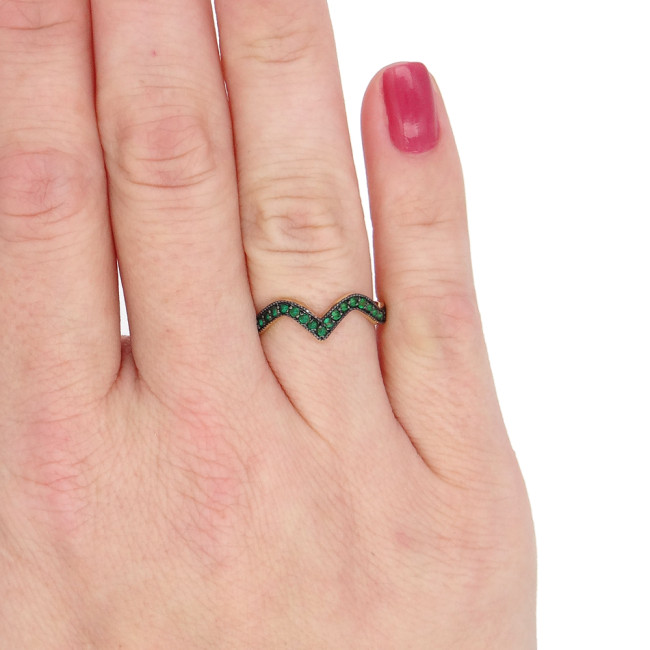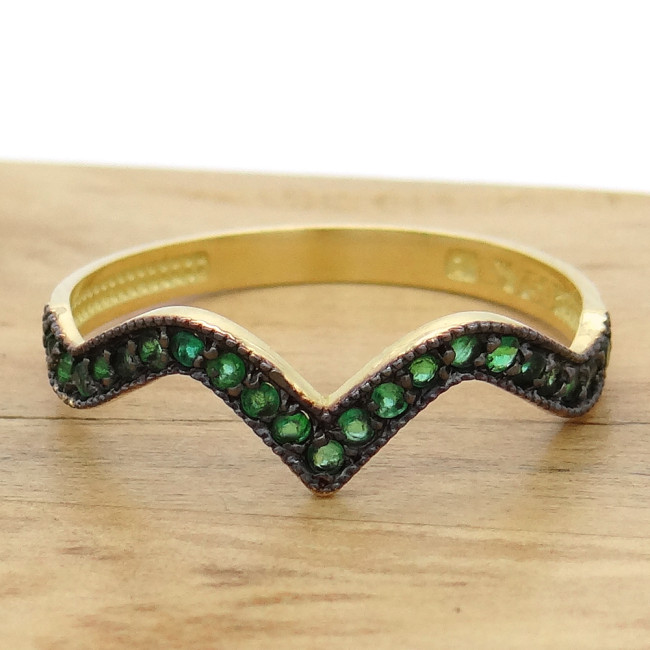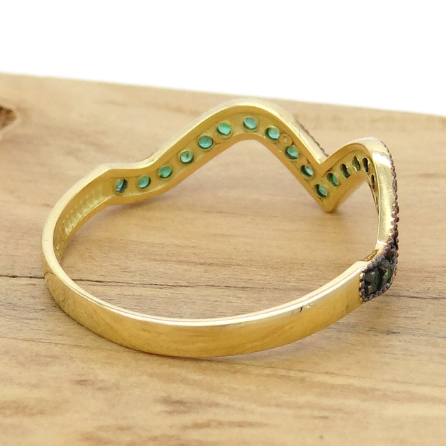 Meia Aliança Onda com 21 Esmeraldas, em Ouro Amarelo 18 Kilates