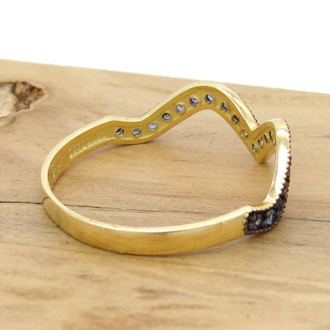 Meia Aliança Onda com 21 Safiras, em Ouro Amarelo 18 Kilates