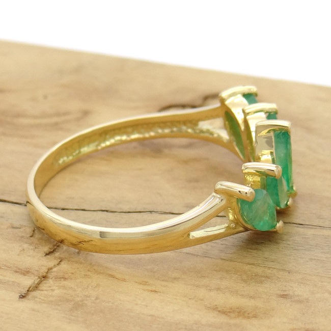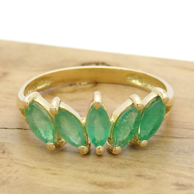 Meia Aliança Tiara com 5 Esmeraldas, em Ouro Amarelo 18 Kilates