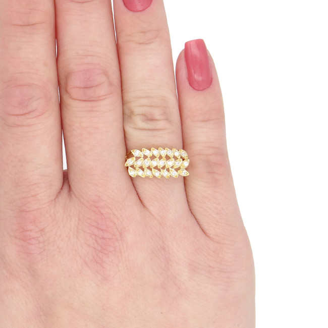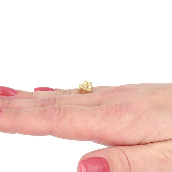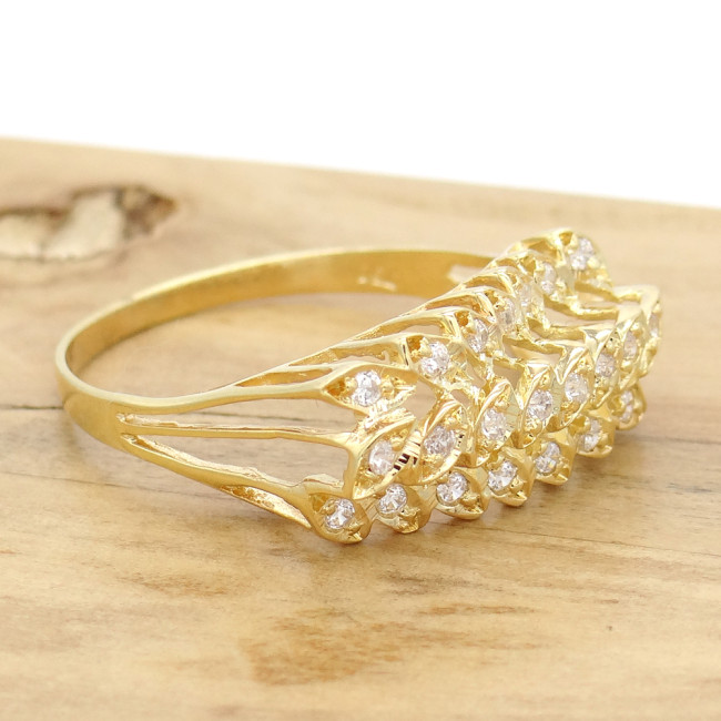Meia Aliança Tripla com 22 Diamantes, em Ouro Amarelo 18 Kilates