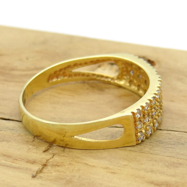 Meia Aliança Tripla com 30 Diamantes, em Ouro Amarelo 18 Kilates