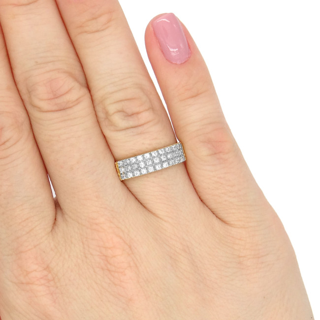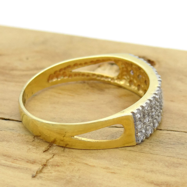 Meia Aliança Tripla com 30 Diamantes, em Ouro Amarelo 18 Kilates