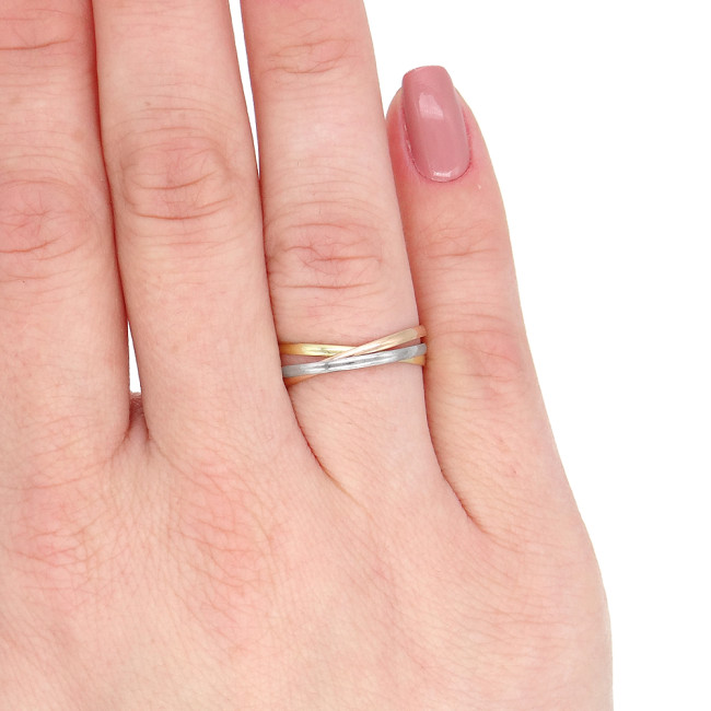 Anel 3 Aros 3 Cores, em Ouro Amarelo, Rose e Branco 18 Kilates