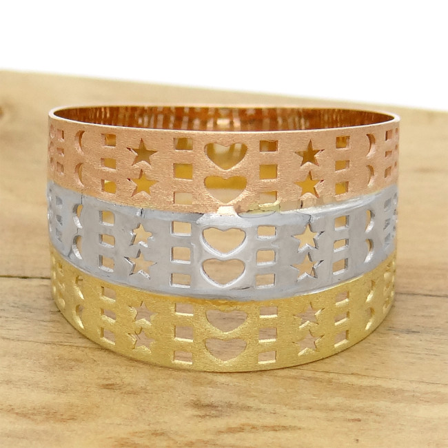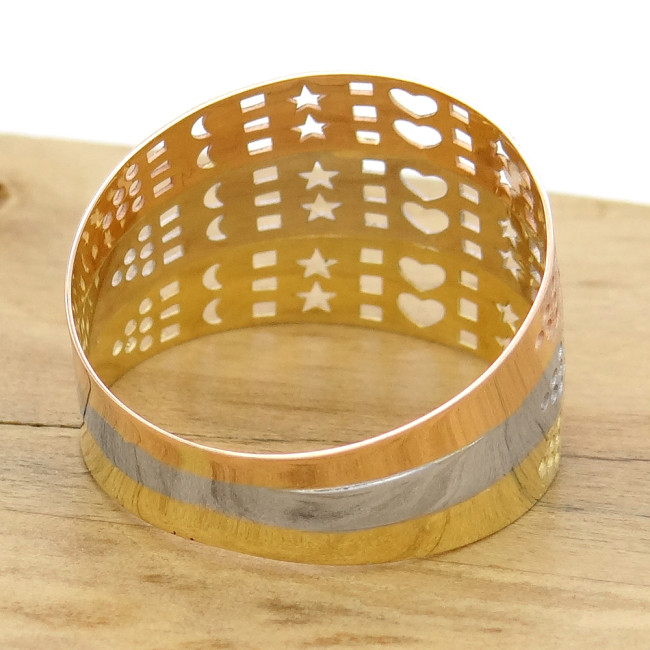 Anel Coração Estrela 3 Cores, em Ouro Amarelo, Branco e Rose 18 Kilates