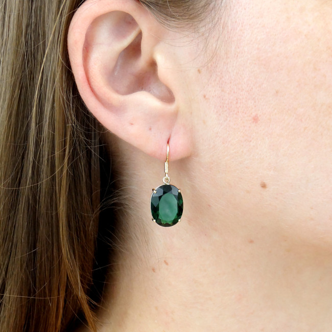 Par de Brincos com Blue Green Oval, em Ouro Amarelo 18 Kilates