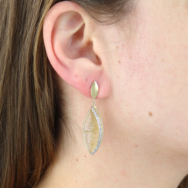 Par de Brincos Aramado com 24 Diamantes, em Ouro 18 Kilates