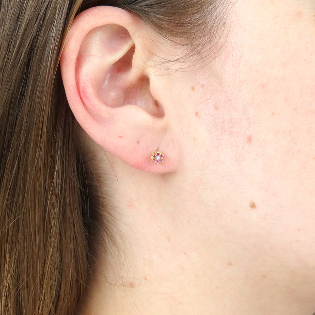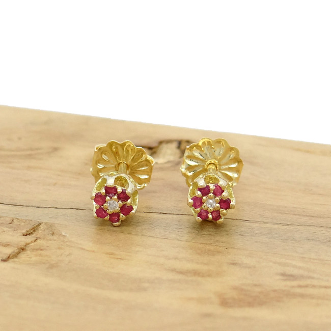 Par de Brincos Chuveiro com 12 Rubis e 2 Diamantes, em Ouro Amarelo 18 Kilates