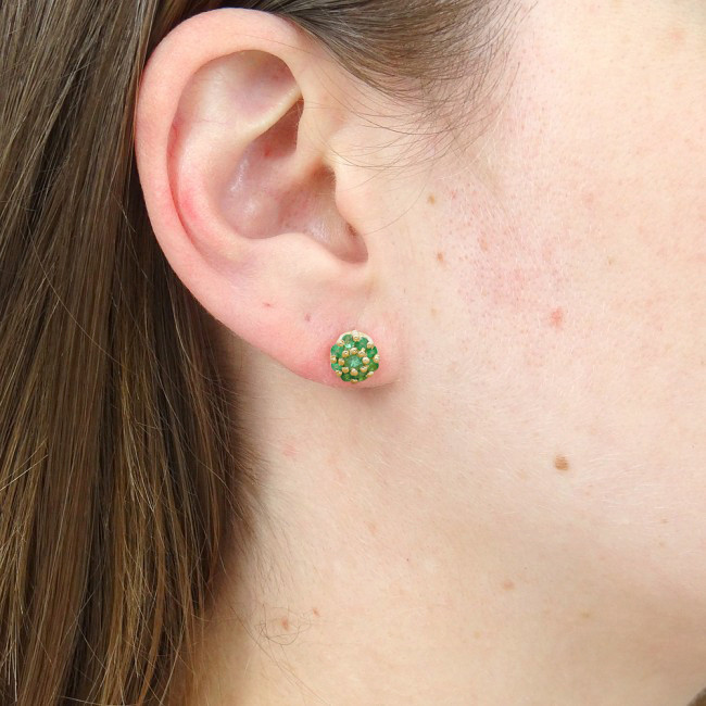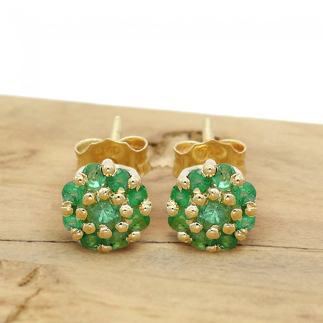 Par de Brincos Chuveiro com 18 Esmeraldas Totalizando 56 Pontos, em Ouro Amarelo 18 Kilates