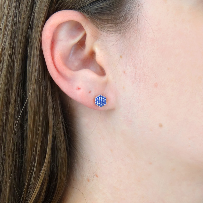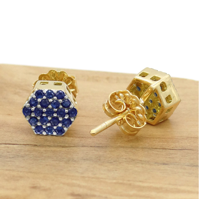 Par de Brincos Chuveiro com 38 Safiras, em Ouro Amarelo 18 Kilates