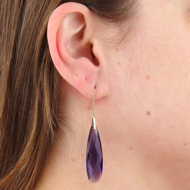 Par de Brincos com Ametista Gota, em Ouro Amarelo 18 Kilates
