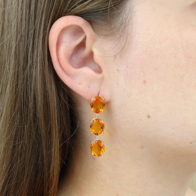 Par de Brincos com Citrino Oval, em Ouro Amarelo 18 Kilates
