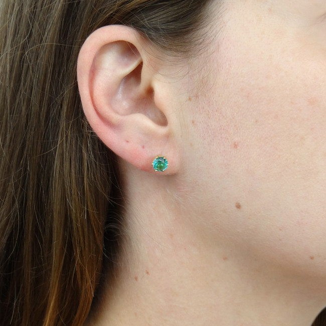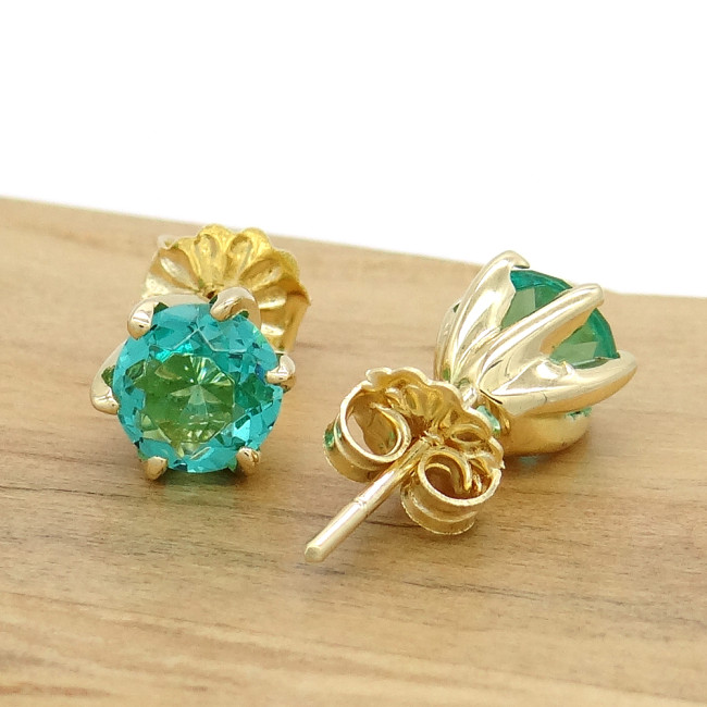 Par de Brincos com Cristal de Turmalina Paraíba, em Ouro Amarelo 18 Kilates
